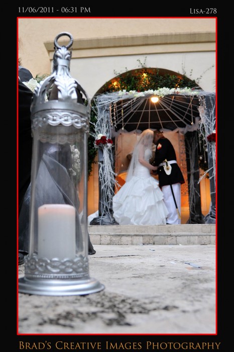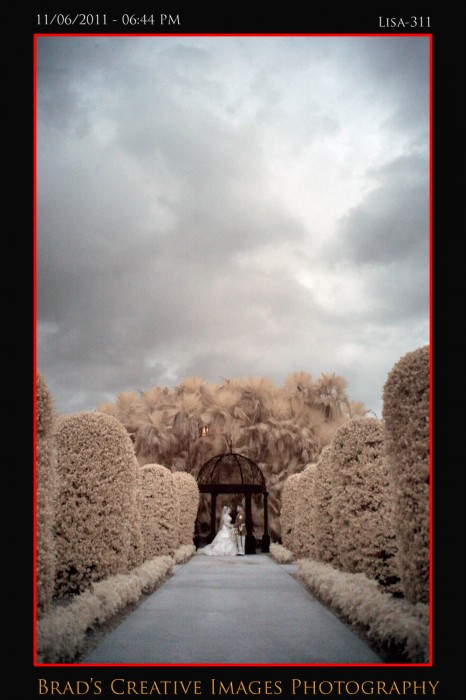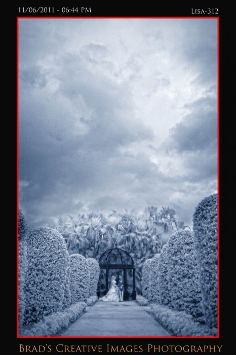 It’s been a while since we shot at Benvenuto’s in Boynton Bch, and it was with great anticipation that we awaited this weekends event.  Our bride and groom had really fallen in love with one of our most popular shots ever, the bluejean infrared shot from Benvenuto’s, so we had to try to put a fresh spin on that just for them.  Thing was, daylight savings ended the day before which presented the evening skies much darker than on our original shot.  No matter, we still managed to come up with some killer IR shots even though it was near dark.  Then we scooted back inside, where the band took over for the rest of the evening.