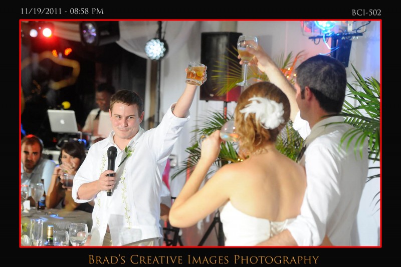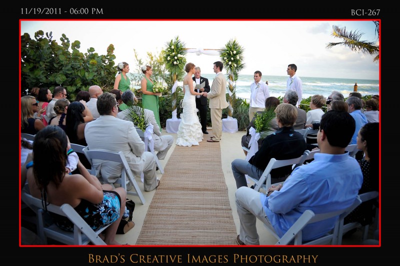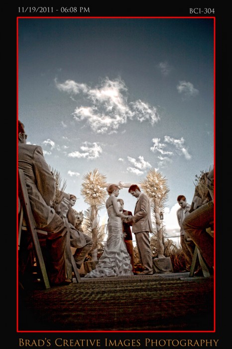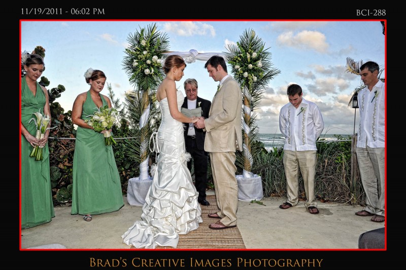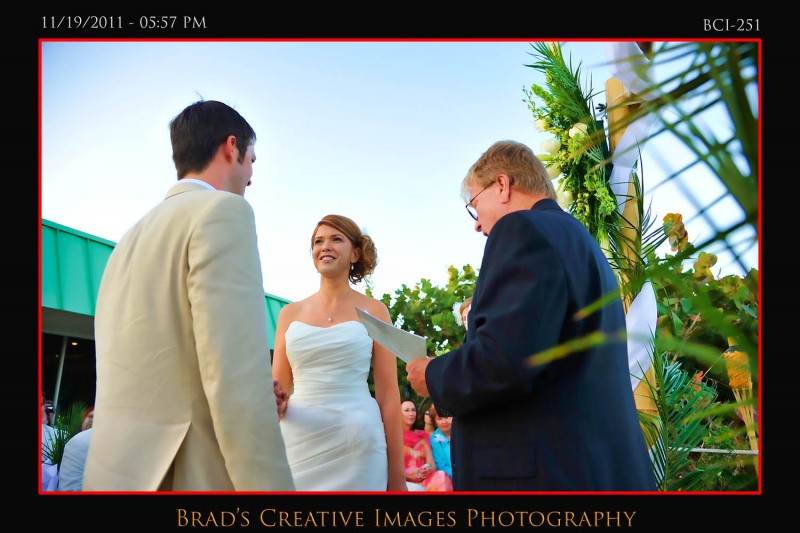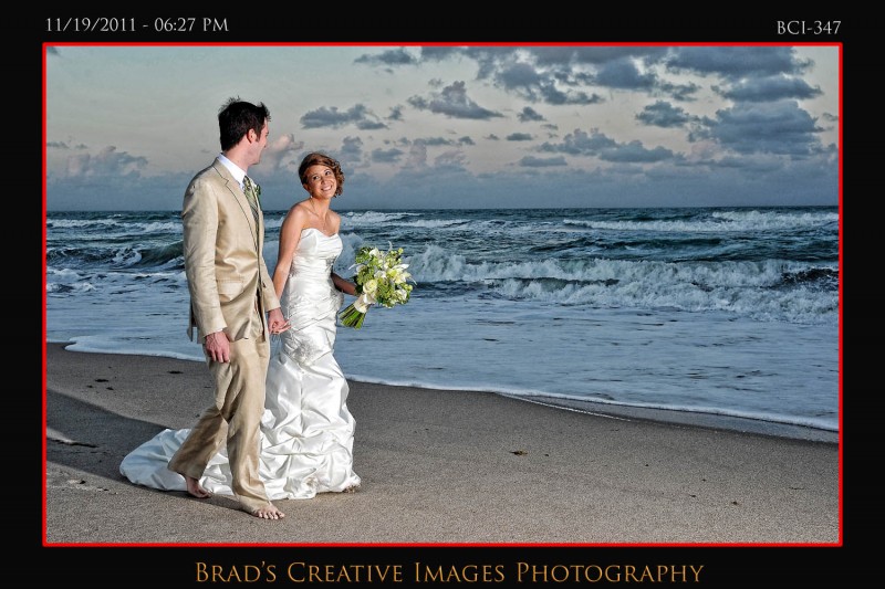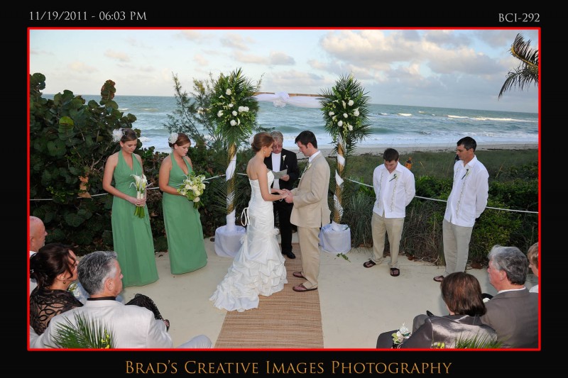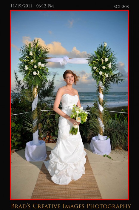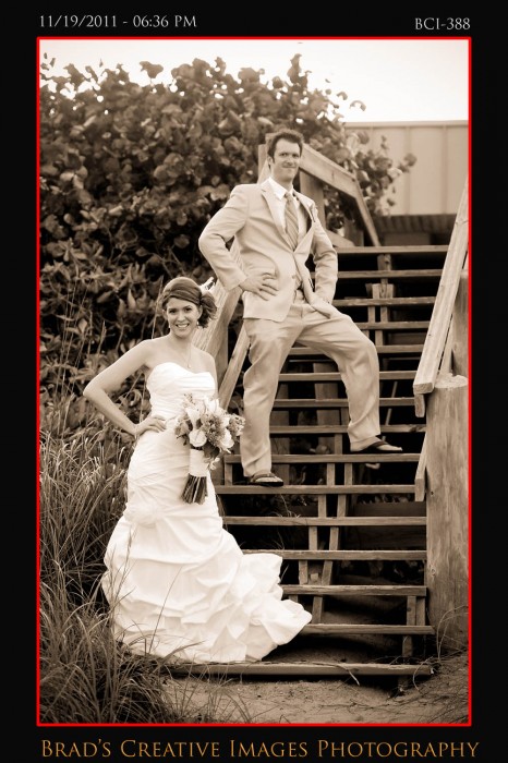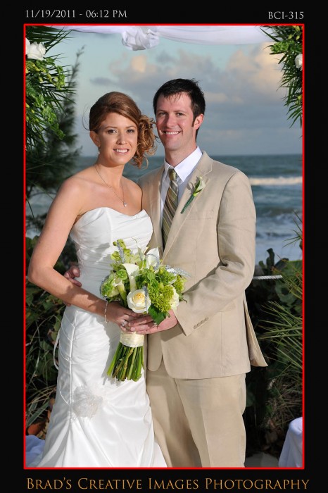 So, we finally got to shoot a wedding at the Brisa Del Mar clubhouse on Hutchinson Island in Jensen Beach. Patrice, Michael and the staff had the place looking fine and the service was terrific! Even got to sample some of the food too which was excellent indeed. The weather dictated that the ceremony take place up on the deck, and it went off wonderfully. After that some quick shots on the beach and then it was back into Brisa for the rest of the evening. Stephanie from Misty Rose provided the floral arrangements, while Party Tenders and Executive Events handled the food and beverages of course. They had a photobooth on scene as well. After they left, we took the opportunity to whip out the green screen and make a couple cool portraits using the hollywood technology to its fullest. Kinda cool to be able to use the venues own beach/deck scene as the background for portraits that were taken late in the evening indoors. To get your free download of your green sceen portraits, please click HERE to the PBS facebook page and like us.