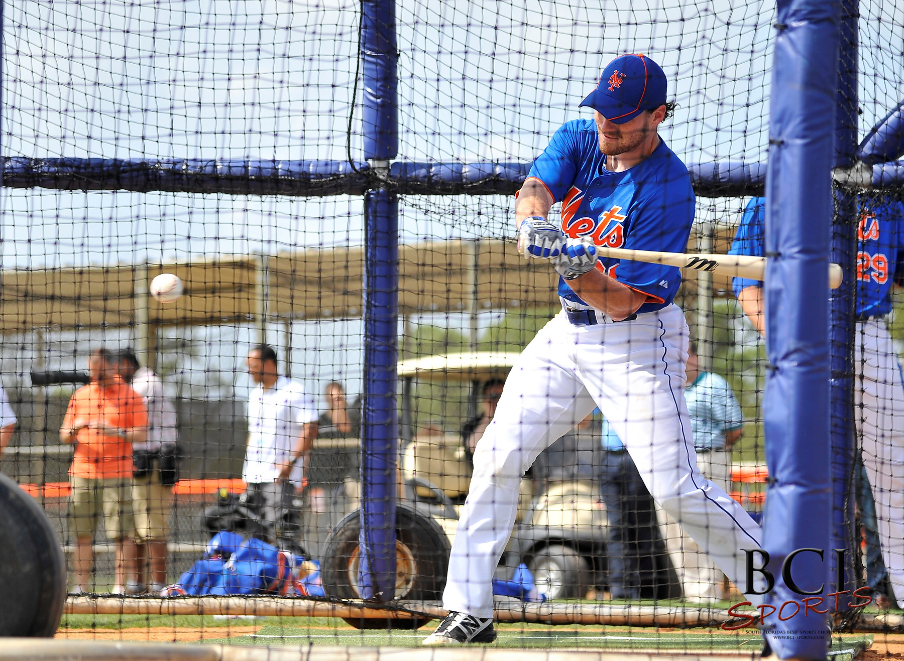 February 27, 2012; Port St Lucie, FL, USA; New York Mets second baseman Daniel Murphy (28) hits during todays spring training workouts at Digital Domain Park. Mandatory Credit: Brad Barr-US PRESSWIRE