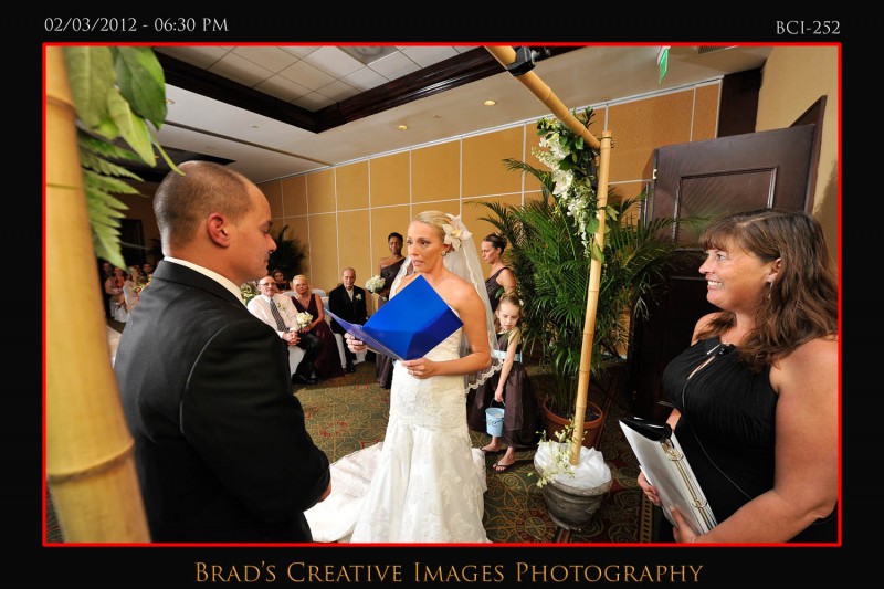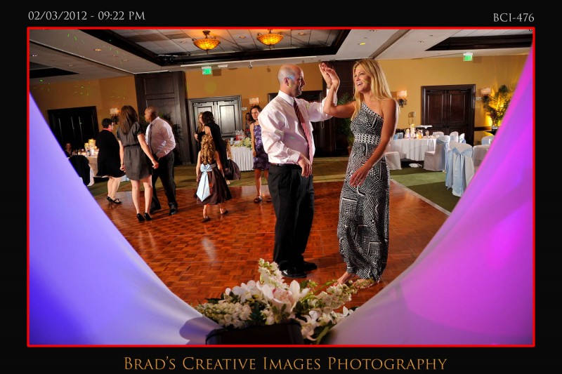 So this week’s wedding found us once again back at one of our favorite  venues.  Lauren and the staff at the Jupiter Beach Resort once again did a fantastic job, despite a last minute change in plans by our bride to move the ceremony inside rather than risk the wind on the bluffs.  Without missing a beat they simply shifted EVERYTHING to the east ballroom.  Rachel from Weddings by Rachel even had a “back up” arch in her van to accommodate, and she got all the decorations re-set inside which was no small feat either!  Once the ceremony was complete, the staff amazingly reset the reception room in the 15 minutes or so it took us to complete the formals, which again is pretty dog gone amazing considering the level of decorations!!  Way to go JBR team!  On a different note, this was yet another example of how being a great dj is not about the music.  What you are really hiring is the emcee ability and talent.  The ability to be ready for anything, and handle it with aplomb, the ability to coordinate with the other wedding pro’s and the banquet hal staff, not to mention the bride and groom, the talent to handle intros that make sense, and the experience to  be prepared for all the formalities are the little things that if done well…all go unnoticed.