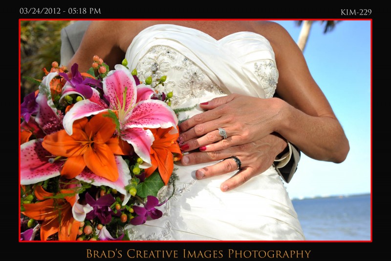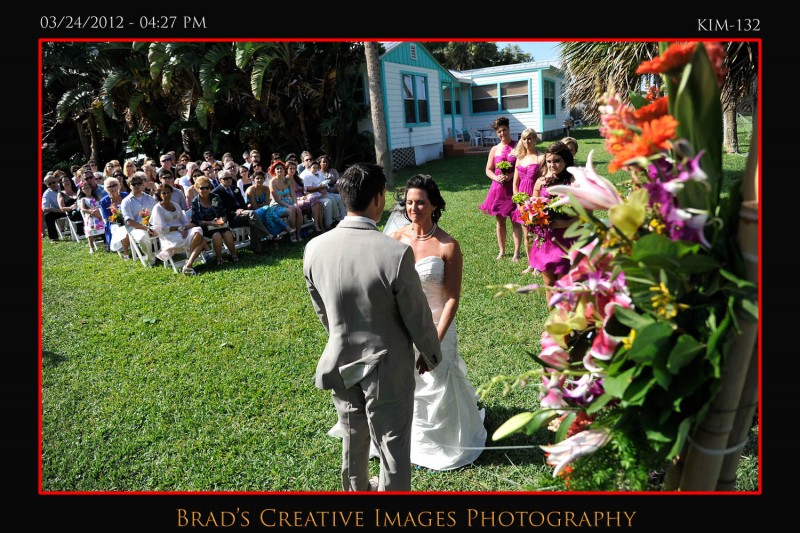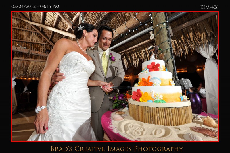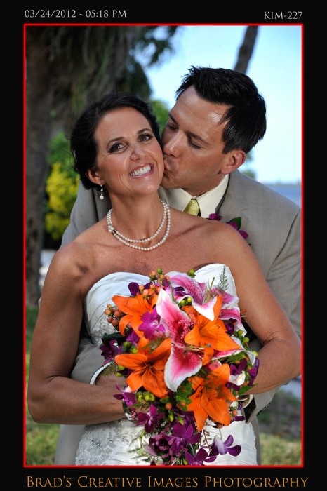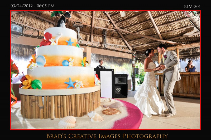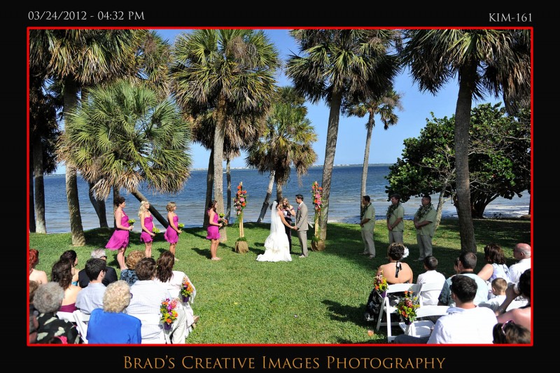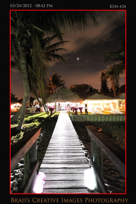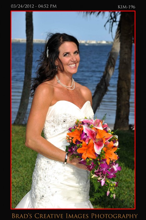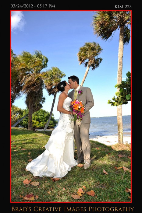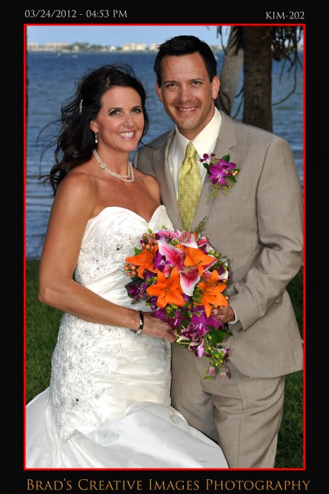 So our bride and groom hail from California….and traveled back to the Treasure Coast (where Mom lives), to have their nuptials on the shores of the Indian River at River Palms Cottages in Jensen Beach. Warm, and breezy as it normally is this time of year, meant a wonderful setting once again for their big day! Barb from Country Club Florists fashioned some wonderful creations with her flowers, and Betty from Sweet Tiers had a super colorful wedding cake that helped set the mood for the tropical evening. Once the ceremony was done, we turned things over to the guys from The Entertainment Connections Premier DJ’s who rocked the party so hard it went overtime for 2 extra hours!! Check out the pix by clicking the read more tab>>>