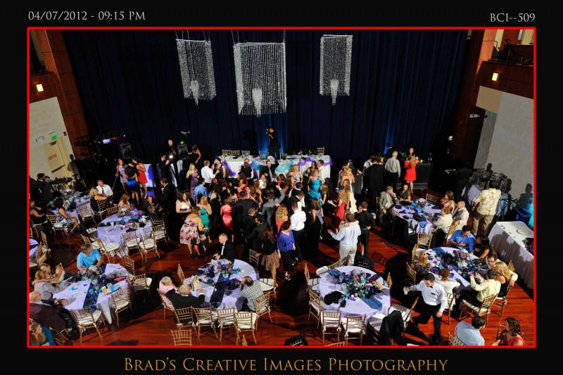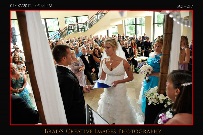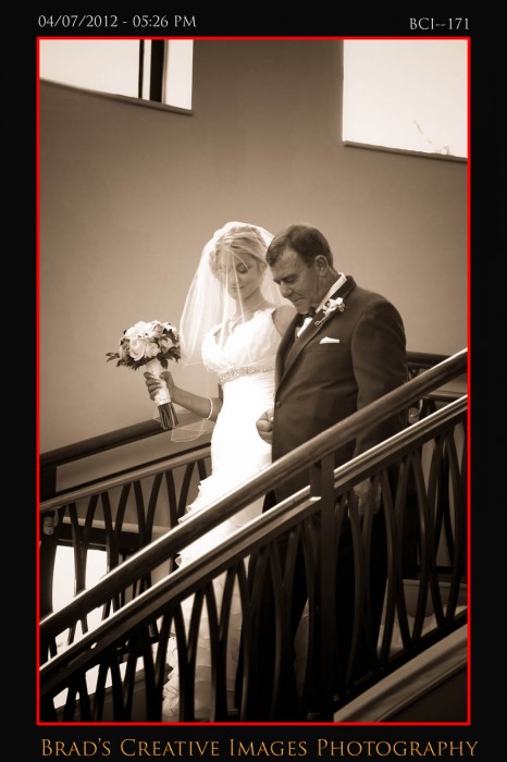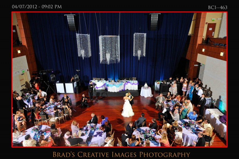 Saturday, was kind of cool, as we got to experience the new Borland Center in Palm Beach Gardens for the first time! Not something that happens to us very often anymore. Designed as a church/theater, the Borland Center affords a rather unique set up for weddings. As you can see in the images below, having an accessible balcony allows some very unique shooting positions for us, as well as lighting opportunities (and challenges). With ample room for getting ready and a huge kitchen facilities, not to mention the outer room with the grand staircase all add up to a very nice wedding venue and a terrific value as well. Once again Rachel from Weddings by Rachel officiated, and was the wedding planner behind all of the details. The other cast members were a who’s who of wedding professionals in the area. In fact, almost all of them, are members of the renowned Wedding Professionals of the Treasure Coast as well as Treasure Coast Brides Magazine. The vendor team includes: Weddings by Rachel, Giordanos Floral Creations, Traxx Entertainment, Silver Platter Entrees, Verola Studios Video, Cakes by Michelle, and of course good old us for the pix…hahahah