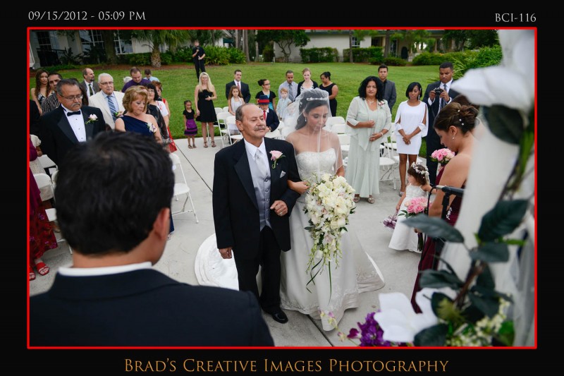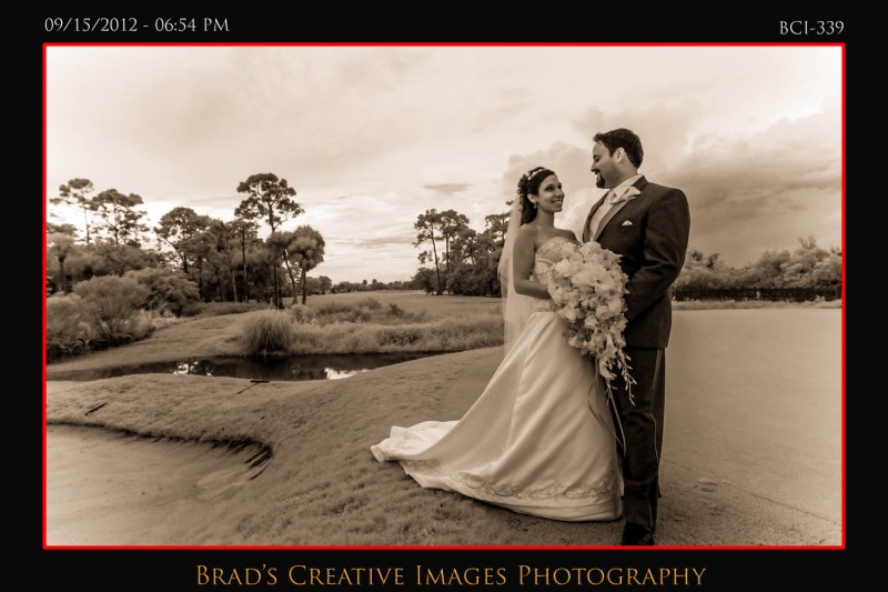 Probably sounds like a broken record by now, but once again, the Santa Lucia Riverclub at Ballantrae played host to this weeks wedding, and as usual, everything was wonderful. There is just something tranquil about being that close to the waters edge during the ceremony that really sets the stage. Once we got them officially wed, we played along the shore and out onto the 18th hole for some fun romantic pix, then it was back inside where Showtime Entertainment took over the reigns and gave the evening a distinctive Latin flavor. Maria and the staff from Ballantrae had every detail taken care of and Sarah and Ralph from Giordanos Floral Creations helped with all the fantastic floral decorations and bouquets! Michelle from Cakes by Michelle also cooked up a wonderfully yummy masterpiece of a cake that everyone gobbled up with a big smile!
