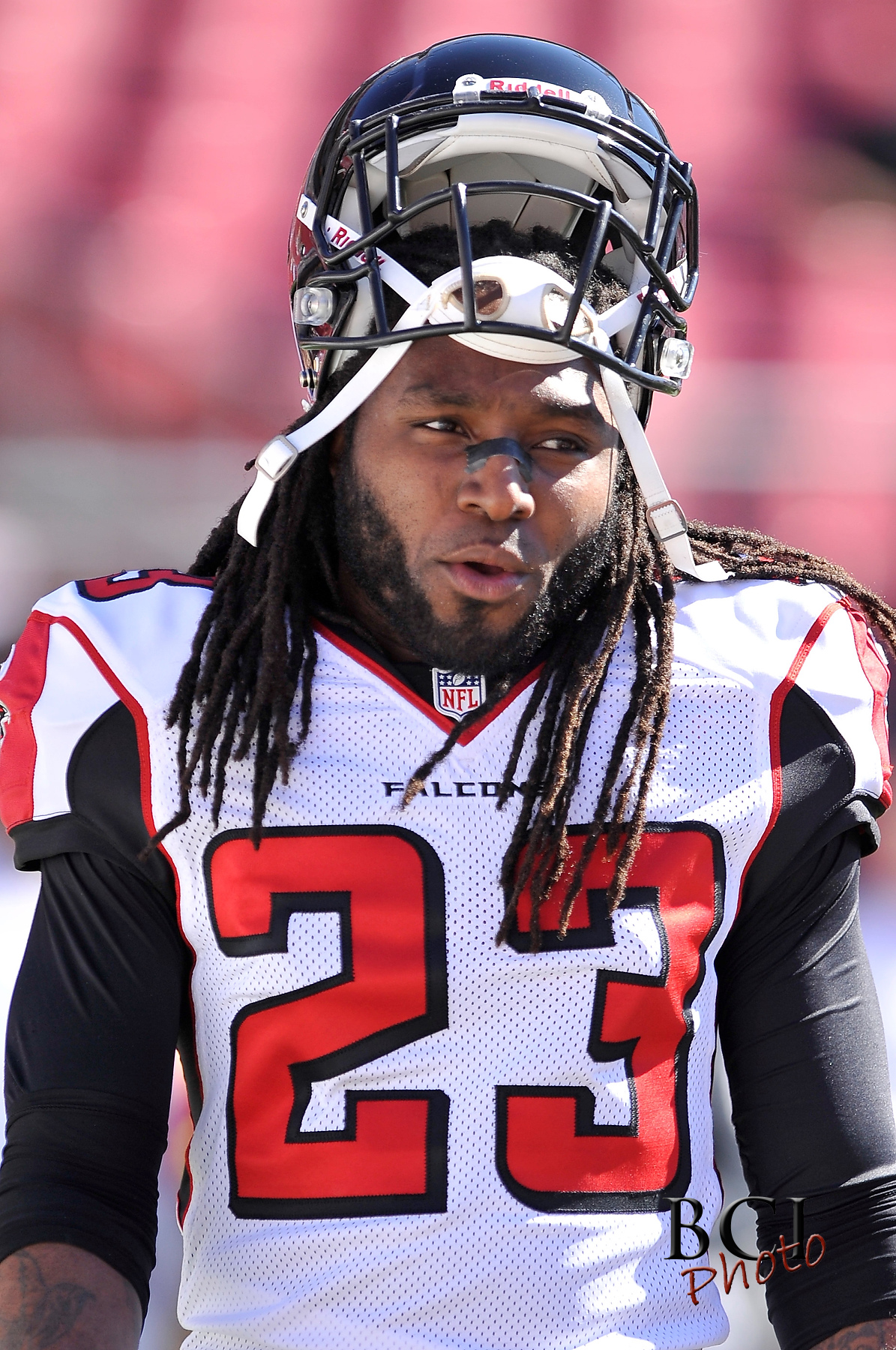November 25, 2012; Tampa, FL, USA; Atlanta Falcons cornerback Dunta Robinson (23) prior to the game against the Tampa Bay Buccaneers at Raymond James Stadium. Mandatory Credit: Brad Barr-US PRESSWIRE