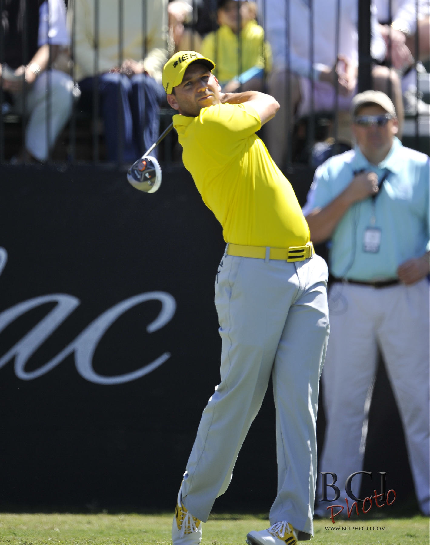 March 07, 2013; Miami, FL, USA; Sergio Garcia tees off on his first hole at the WGC Cadillac Championship at Trump Doral Golf Club. Mandatory Credit: Brad Barr-USA TODAY Sports