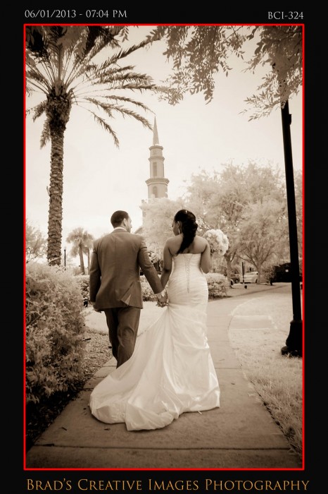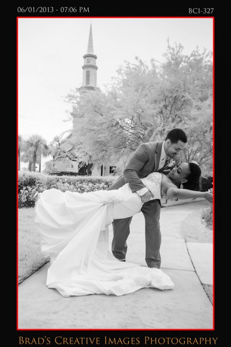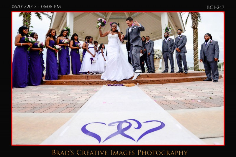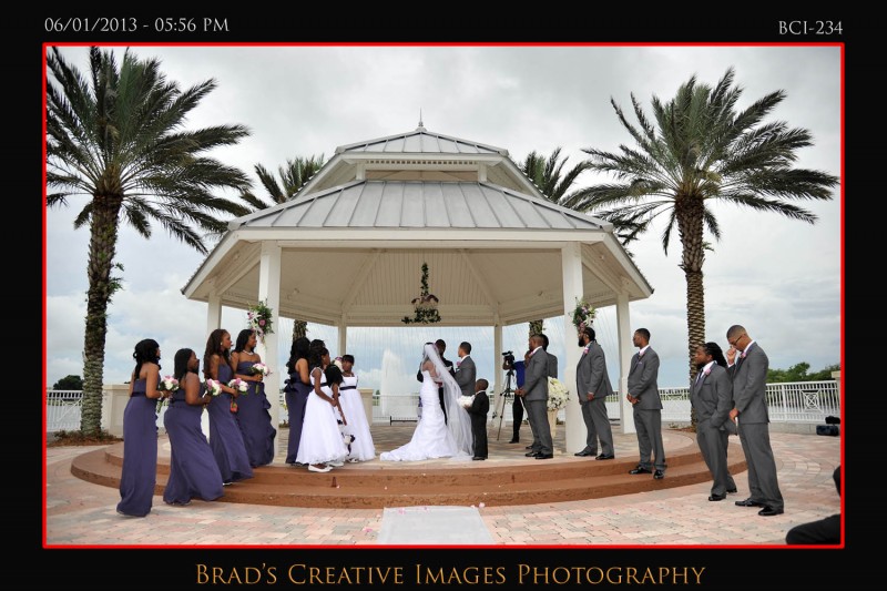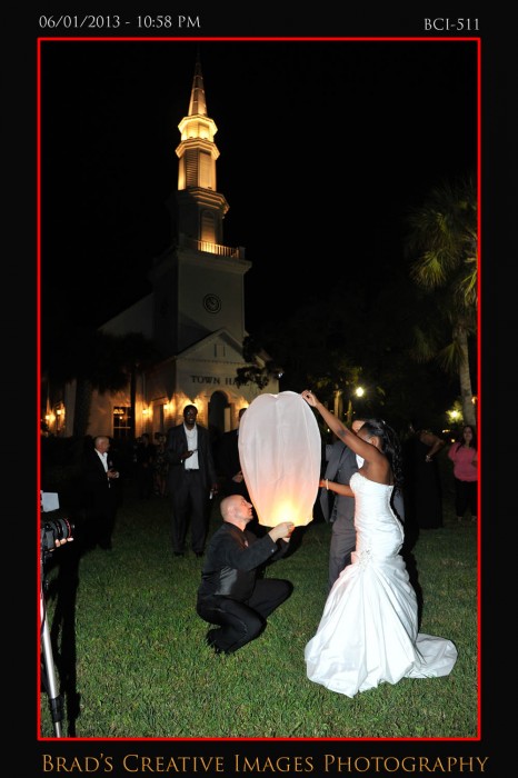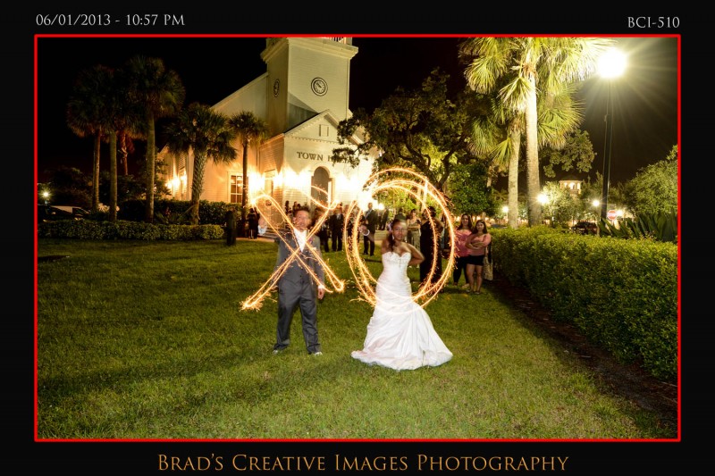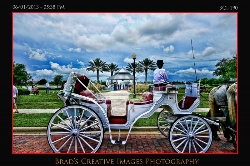 Well, as you all know the weather has been a bit….well….un-Florida like. Thats being kind I suppose as its been kind of wet n rainy for quite a while. Somehow, we’ve managed to get all our weddings in safely though, so thanks to the good Lord above for looking out for all our brides! Saturday was no exception as we were outside at the gazebo at Town Hall for a wonderful wedding ceremony! The bride pulled up in a way cool horse drawn carriage to the delight of everyone! After the extended ceremony; everyone scampered into the hall where Vince from Traxx Entertaiment took over the emcee duties, and guided our couple thru a terrific evening of entertainment and fun. Michelle, from Cakes by Michelle once again made not only an awesome wedding cake, but a very cool grooms cake just for Will! The entire day was orchestrated by Rachel from Weddings by Rachel who did an awesome job keeping thing running smoothly and looking fabulous despite all the distractions! Silver Platter served up some good food for everyone and all in all it was a fantastic event once again! Christina Kelly did a great job on the makeup, and of course, the flowers and decorations were amazing….as they always are when Sarah works her magic at Giordanos Floral Creations