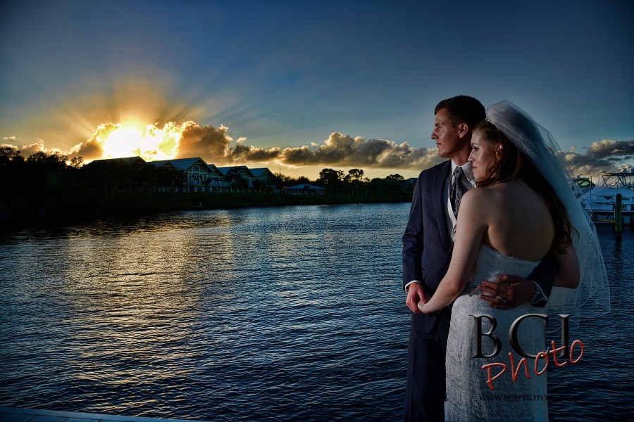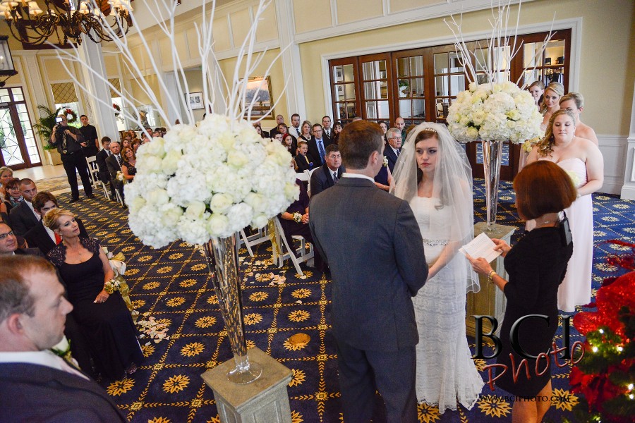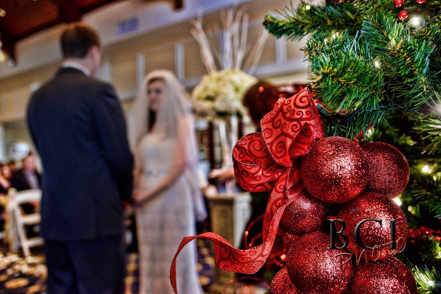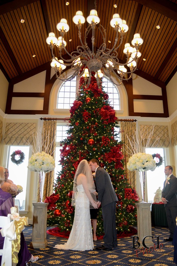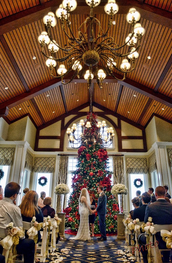 It’s always a pleasure to shoot at Harbour Ridge (golf or pix). But it’s especially nice during the holiday season. Yesterday was no exception as Lauren and Jason tied the knot in front of the huge Christmas tree in the lobby. Once they got officially hitched, we ducked out to get some romantic pix before our light ran out and then turned the reigns over to Vince from Traxx Entertainment who emceed the party till the very end. Check out the pix below!
