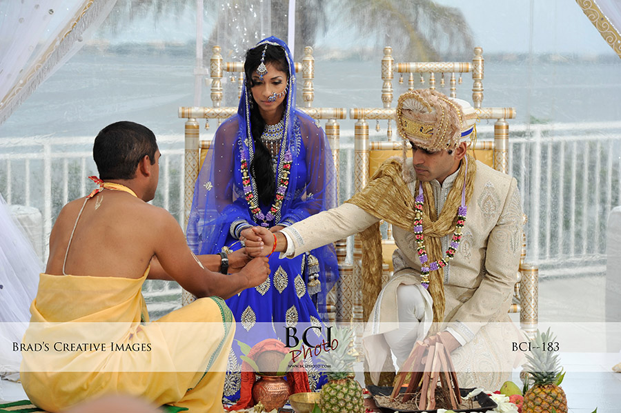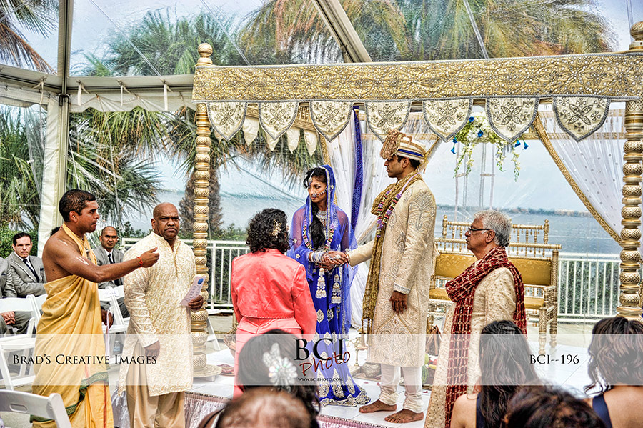 So once again our weekday wedding blitz is in full swing! Tuesday found us at the Mansion at Tuckahoe in Jensen Beach which played host to a dual ceremony Indian/Christian wedding and grand reception on the pavilion. Christine from Dreamday Celebrations was the wedding planner for our Destination Florida couple from LA. With weather threatening from all sides, Eventmakers provided sanctuary for both places with some fantastic see thru tents, and gorgeous hanging chandeliers which really made for an opulent and dramatic backdrop for the evenings events. Sarah from Giordanos worked her usual floral magic, and Vince from Traxx Entertainment rocked the party and lit the reception with aplomb. The weather held out, and we were able to grab some tasty images down by the water in between events, but the real story of the day was the dynamic cultural diversity exhibited with the contrasting ceremonies. The colors, and pageantry of the Indian ceremony were spectacular. All this added up to our largest picture count ever! Check out some of the amazing images below, and feel free to leave em some love in the comment section too! OMG, I just realize I picked 91 images for this post….an new record for that too!