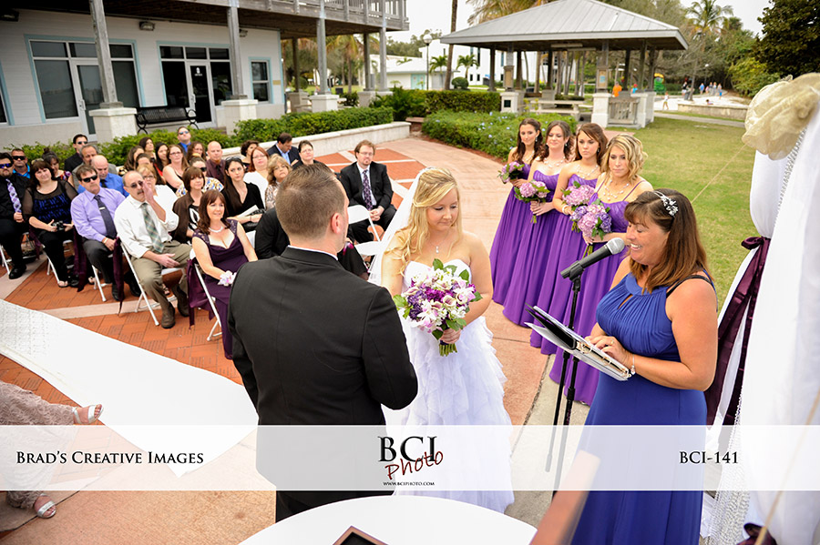 Perhaps the single most popular wedding venue on the Treasure Coast, Indian Riverside Park, was once again our host for Saturday’s wedding! Its always fascinating to see/watch the public reacting to a wedding in a place such as this. While most are respectful, some simply don’t get it. All in all, though it still remains one of the best values around. Our couple tied the knot on the patio area overlooking the river for a spectacular backdrop. Once done, we scampered around the property (where there were 2 other brides who had stopped by via their limo for picture taking), and we too made some nice romantic images before turning things over to Louie G Entertainment who emceed the event right up to the sparkler send off! All of which was orchestrated by Rachel and Mike from Weddings by Rachel. Check out some of our favorite images below!