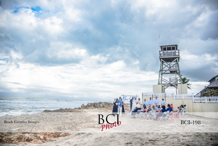 Seems like the weather has played a key role in so many of our recent events, and this was yet another instance. Threatening rain, accompanied by very high surf due to an offshore storm lead to a very interesting time at the House of Refuge in Stuart, which hosted our event. Waiting until the very last second, we decided to go ahead and have the ceremony on the beach, which Mother Nature thankfully accommodated without issue. Lots of the area’s finest came together to hustle to make it all come together, including: Weddings by Rachel, who kinda did everything and anything for them, Cakes by Michelle who delivered a fantastic looking (and tasting cake), Sarandipity Florals, The Paella King who put on a show, and Bonner Bar who kept everyone refreshed! You can see some of our favorites below!