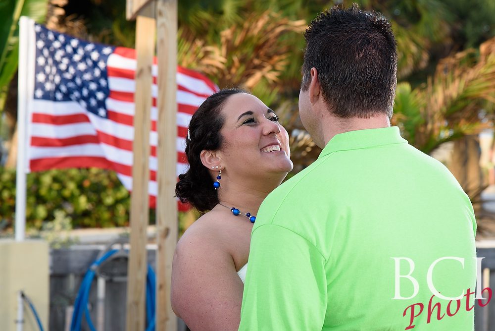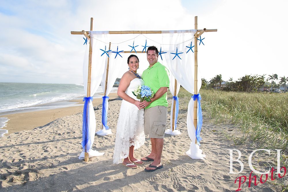 We absolutely love weekday weddings. Free from all the crowds at the beach, and all the stress of the usual Saturday events, weekday weddings are just so much more laid back and relaxed. Such was the case yesterday as well. The Inlet Grill in Fort Pierce was the venue and had just enough beach left from the storms to host our couple from Indiana’s nuptials. Weddings by Rachel officially tied their knot, and made sure the place looked festive and such. Then DJ Louie G took over and emceed their group thru the reception. We got all these shots in just 90 minutes if you can believe it! Anyway check out some of our faves below.
