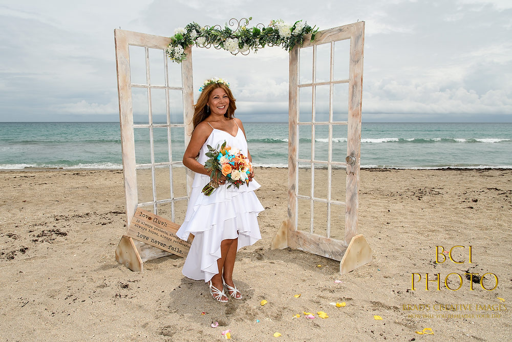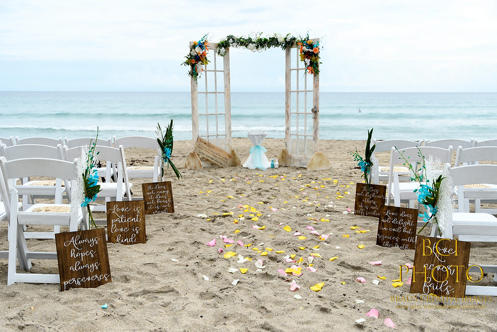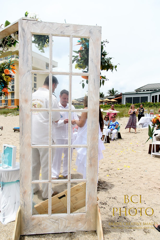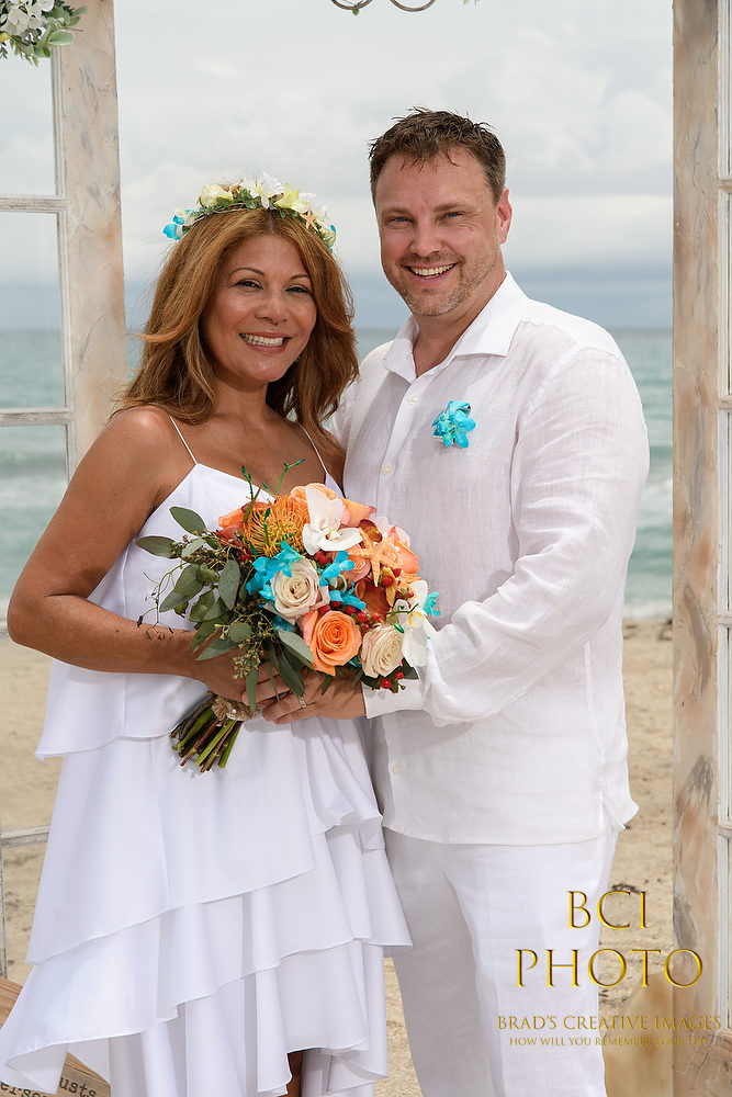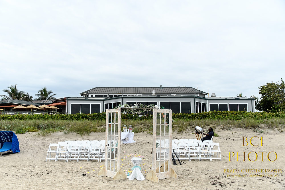 Wow, what a waterlogged soggy weekend that was! Thankfully, this smaller intimate wedding by the sea at Pietros on the Ocean, went off before all the rains ensued. Some fantastic wedding details, florals, and decorations by Sarandipity Florals really made the event festive and they even had a steel drum playing to set the mood. Once the ceremony and pix were done it was inside the AC where they enjoyed a nice meal with their friends and family….and we jetted off to wedding number two. Enjoy some of our faves below!