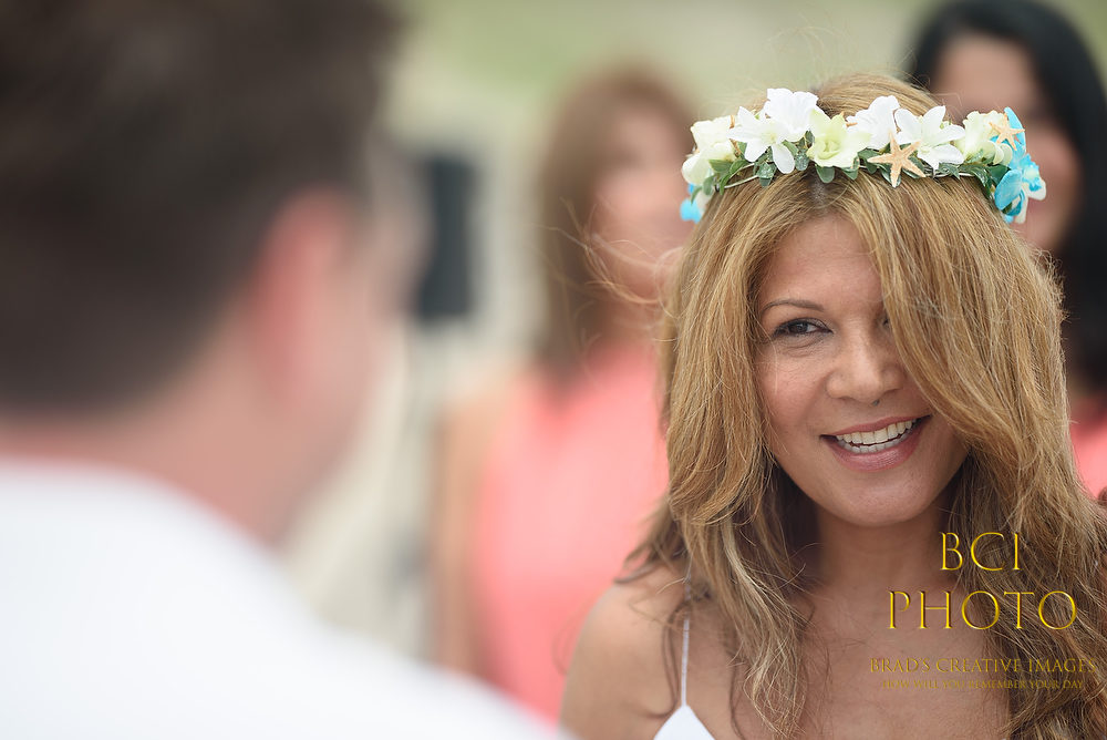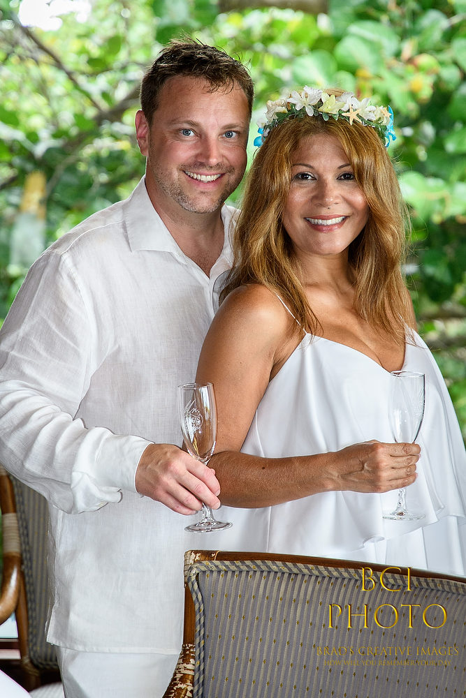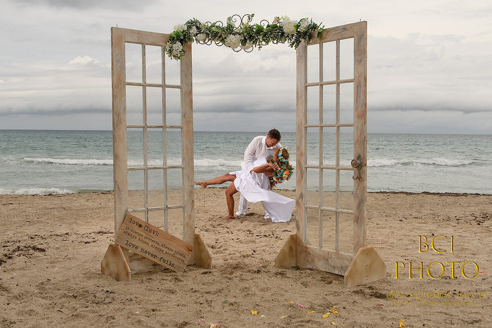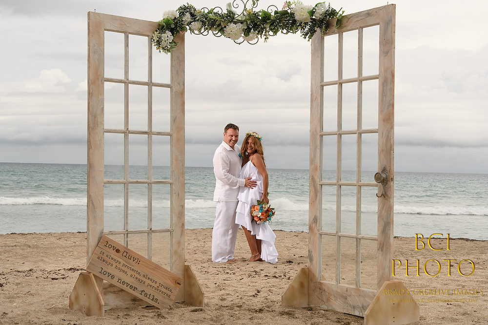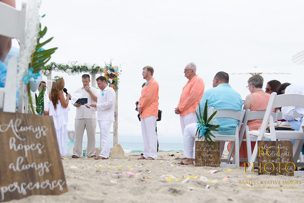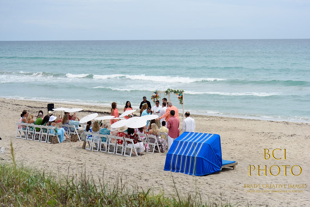 Wow, what a waterlogged soggy weekend that was! Thankfully, this smaller intimate wedding by the sea at Pietros on the Ocean, went off before all the rains ensued. Some fantastic wedding details, florals, and decorations by Sarandipity Florals really made the event festive and they even had a steel drum playing to set the mood. Once the ceremony and pix were done it was inside the AC where they enjoyed a nice meal with their friends and family….and we jetted off to wedding number two. Enjoy some of our faves below!