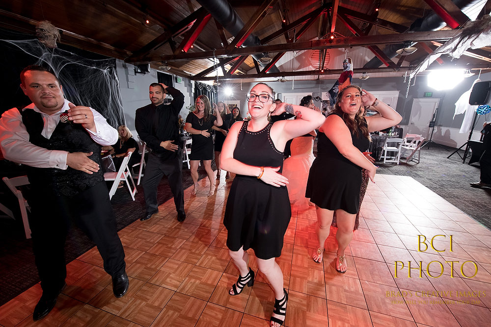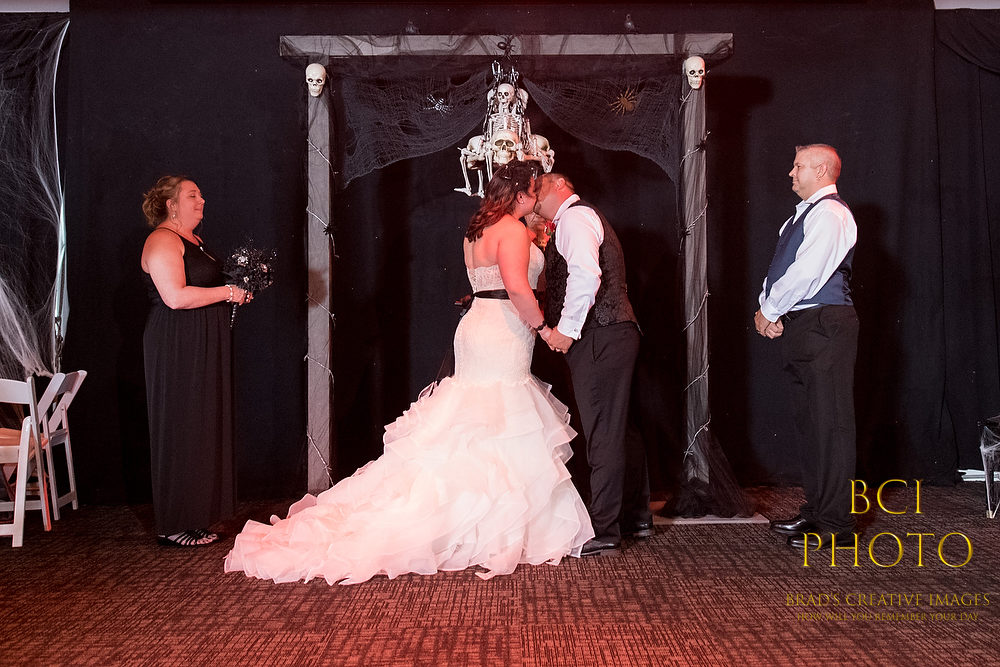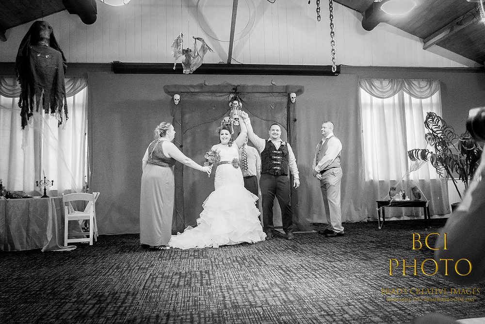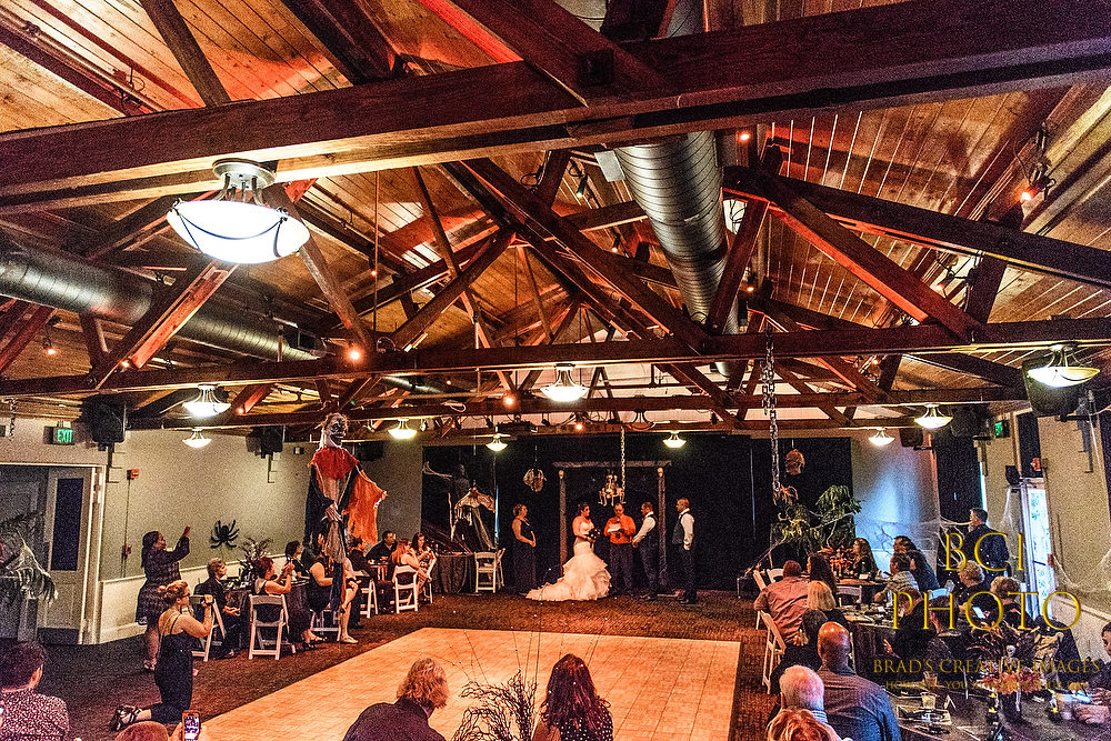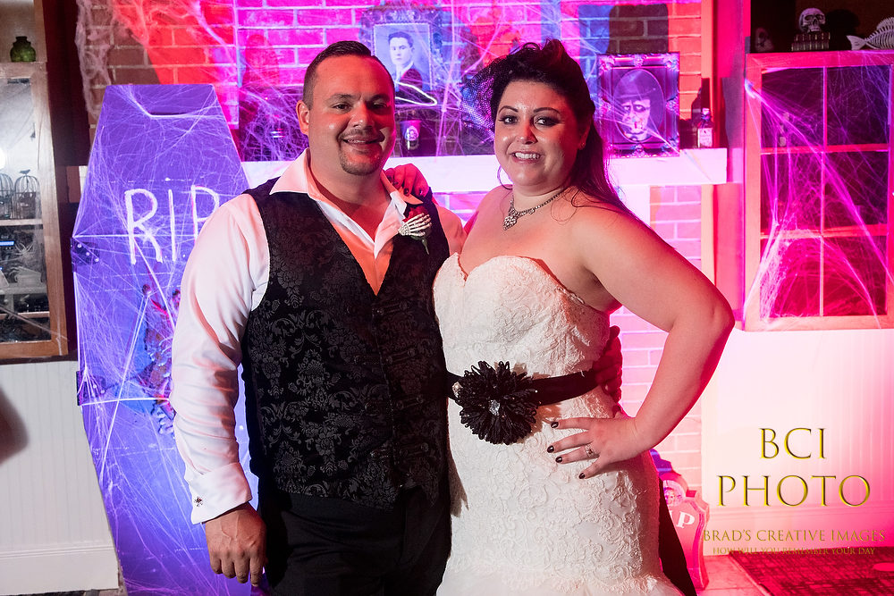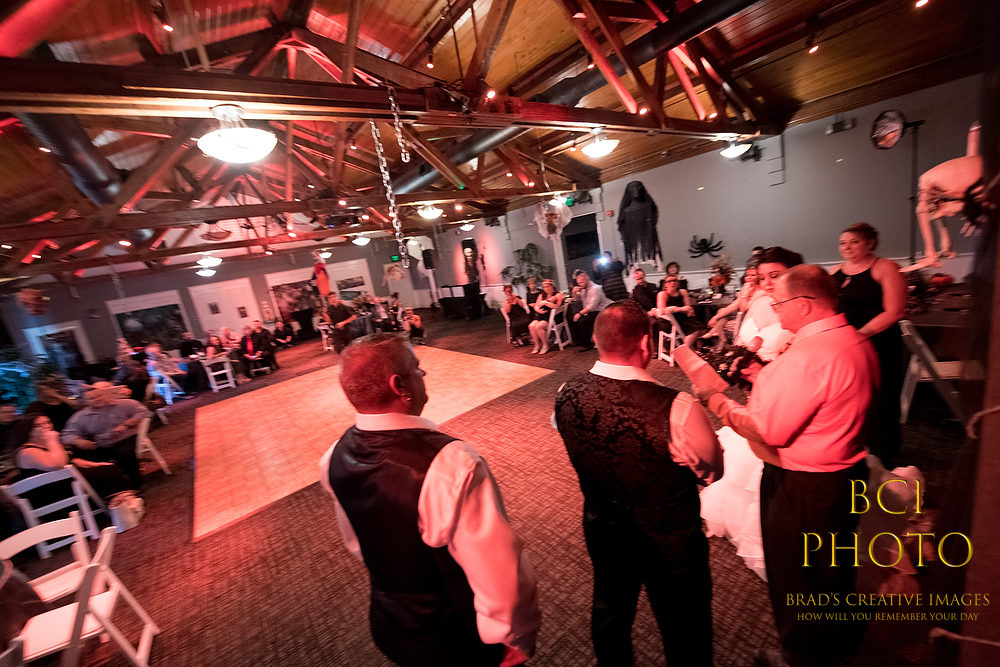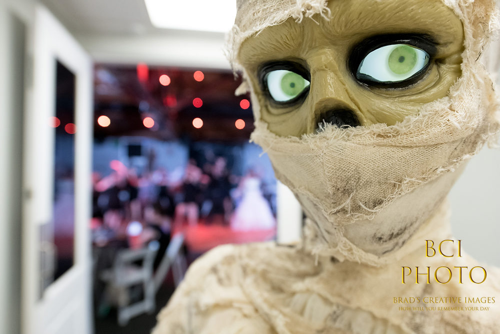 So the guests arrived with the notion of a Halloween party, but our couple had a few surprises up their sleeve, the biggest of which was that their wedding was the real reason for the party! Once they revealed the plan, everyone had a great time ringing in the new marriage ceremony. Check out all the mad decorations and set up! What a blast! Check out some of our favorites below!