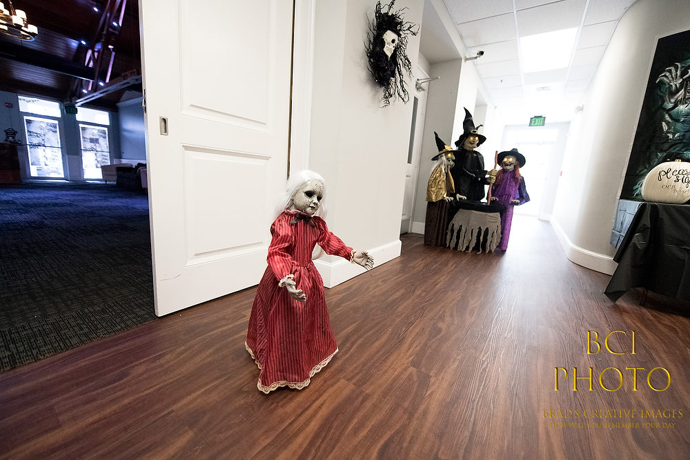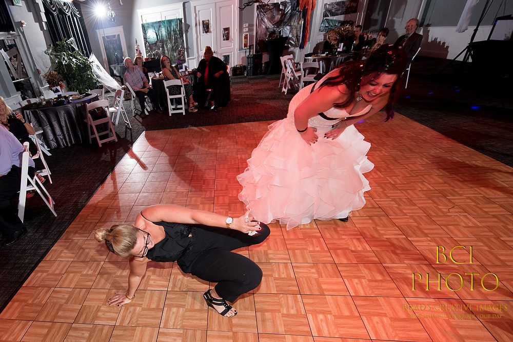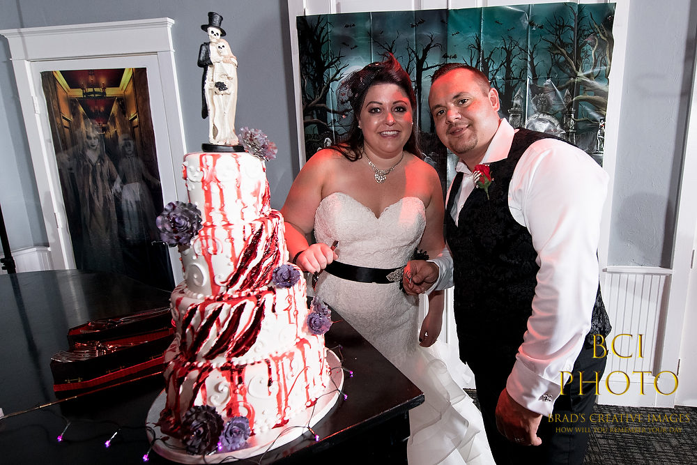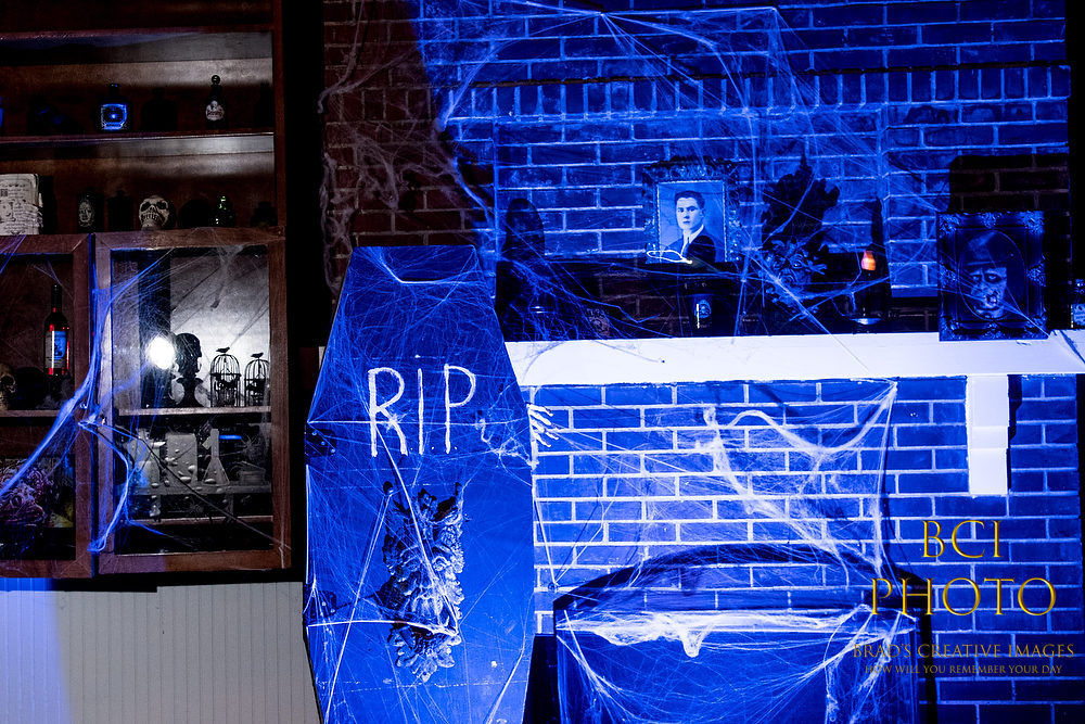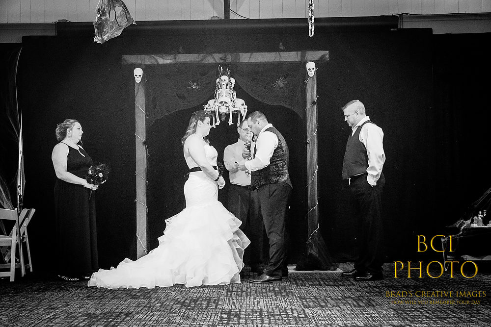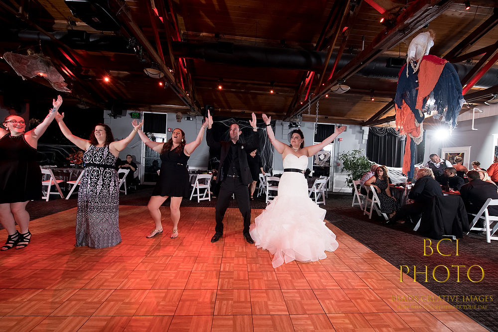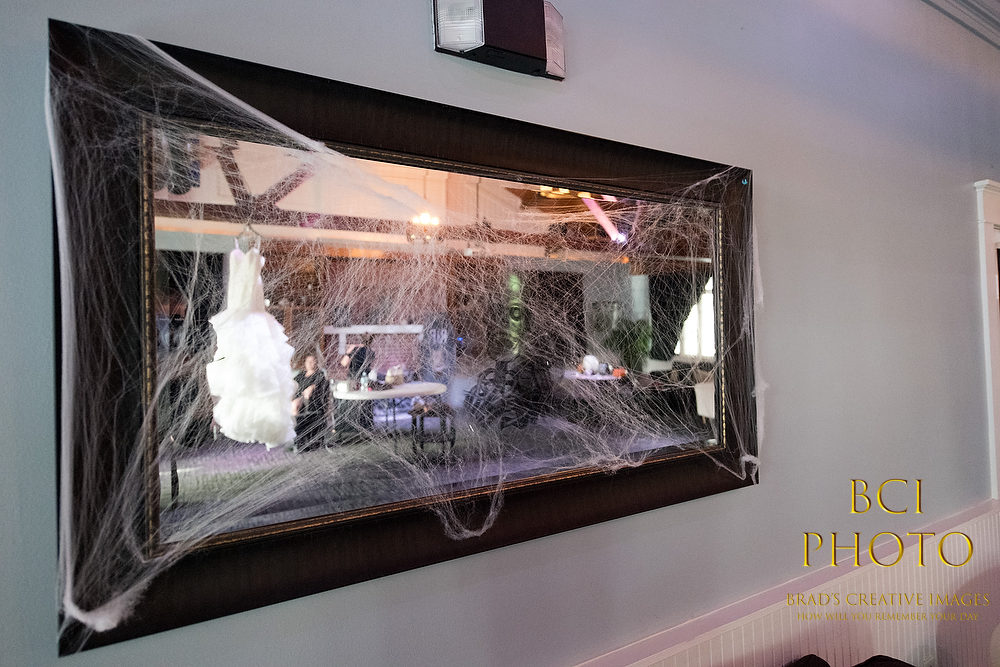 So the guests arrived with the notion of a Halloween party, but our couple had a few surprises up their sleeve, the biggest of which was that their wedding was the real reason for the party! Once they revealed the plan, everyone had a great time ringing in the new marriage ceremony. Check out all the mad decorations and set up! What a blast! Check out some of our favorites below!