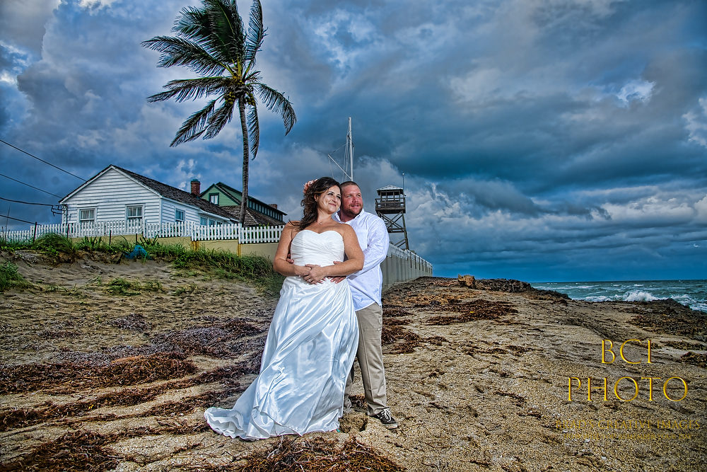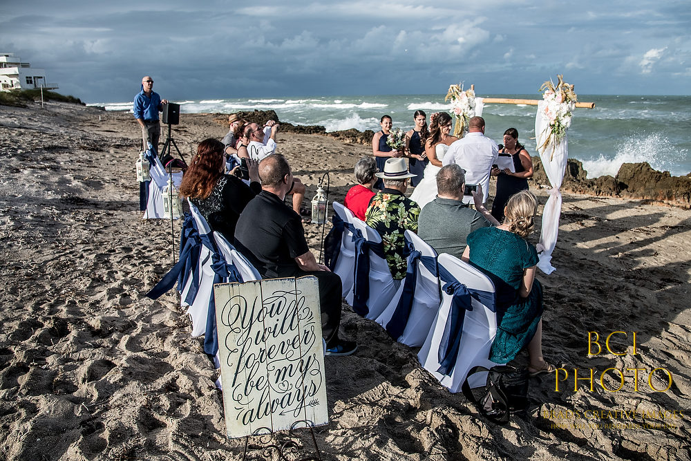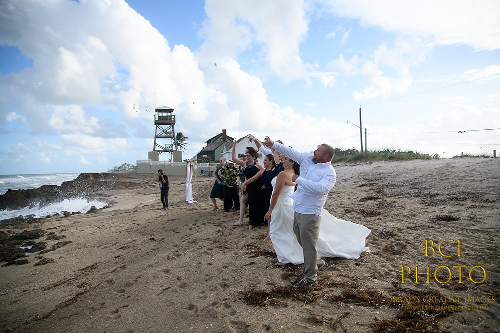We love smaller more intimate weddings at the beach just like this! Thing about the beach is, you never know what old man Sea has in store for you. It’s really never the same ocean twice. Yesterday, it was pretty angry and the pounding surf and high tides, made for a dramatic backdrop, and salty hair too! Our couple weathered the sea spray and had a great time while tying the knot with Weddings by Rachel presiding over the festivities. The rain managed to hold off till the very last second, which worked out well for us and then it was off to a private dinner. Check out some of our faves below!