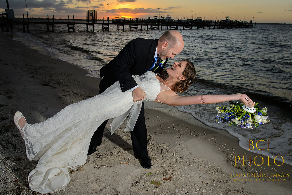 Yesterdays wedding was yet again a perfect example of the more laid back feel and low stress wedding so many brides are opting for. Seemingly without a care in the world, our couple tied the knot under the gazebo as the sun sank over the water….how great is that? Actually….just take a look at some of these images, and you’ll see for yourself just how great it can be. Remember, all of this coverage happened in about an hour and a half. WOW. Some of the pros that helped make it happen: Of course the staff at Pietros was number one. Misty Rose Florist and the Cake Lady also did their thing to help make their day a special one as well. Congrats to Katie and Coad, and enjoy some of our faves below!