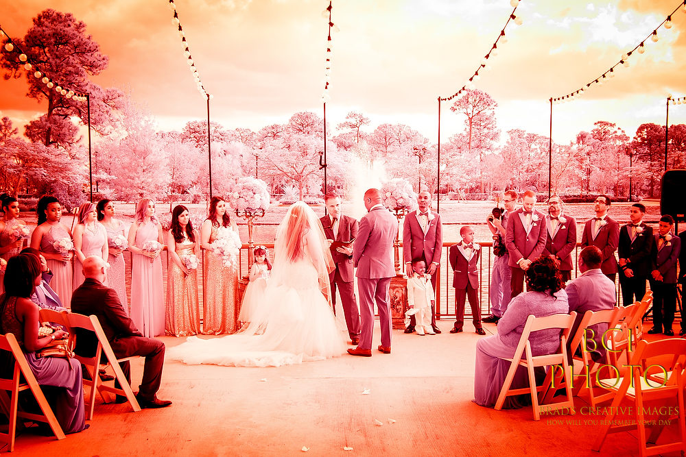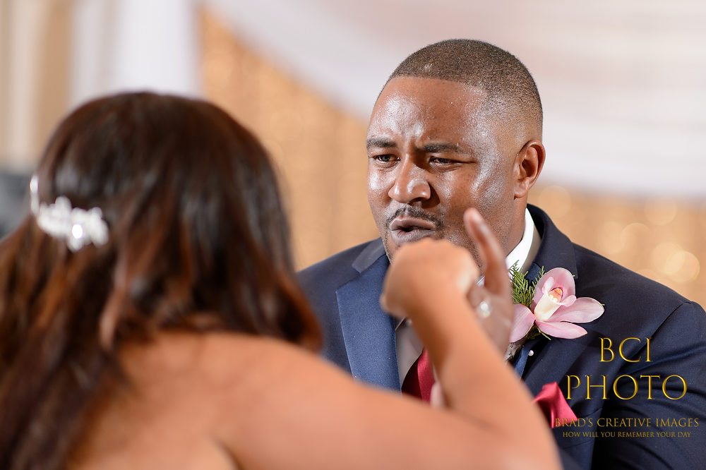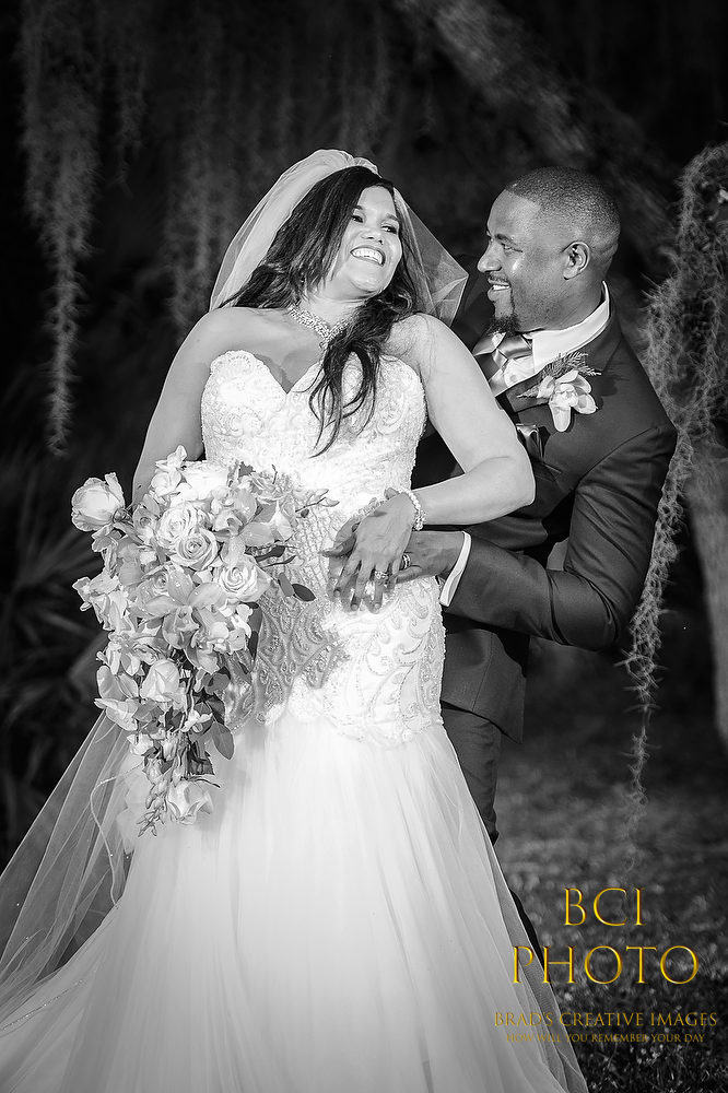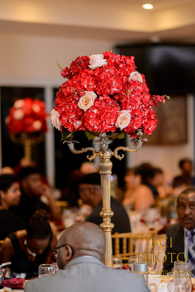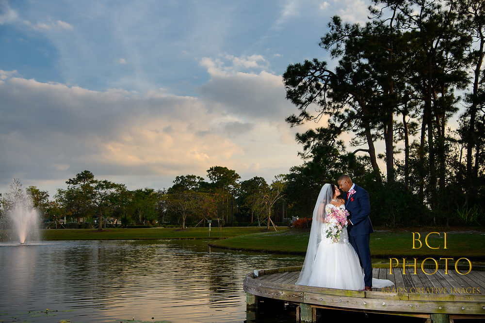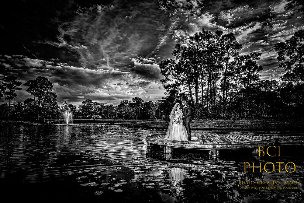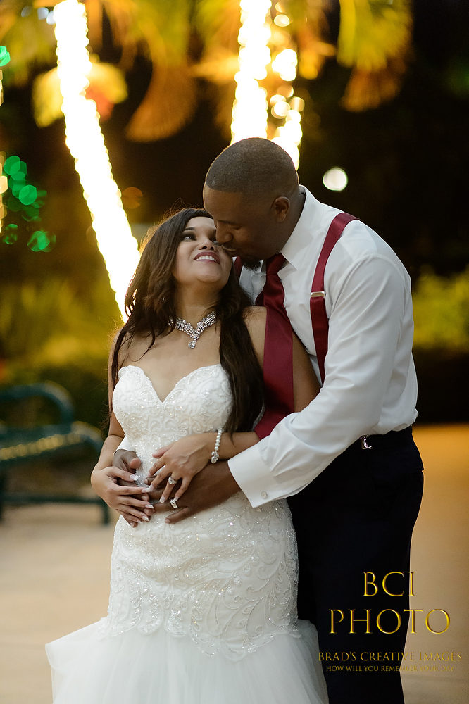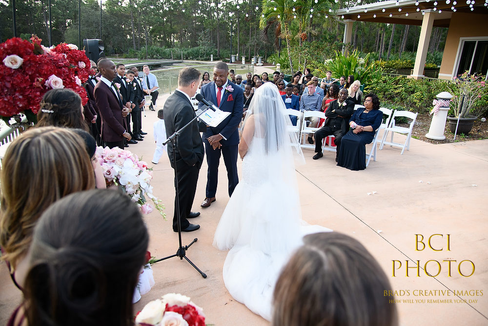 We love holiday themed weddings, and this was no exception. Our couple chose the PSL Botanical Gardens as the setting for their nuptials on this 23rd day of December. The patio was lit with market lighting, and holiday colors abounded with amazing 4 foot high centerpieces from Sarandipity Florals as Weddings by Rachel orchestrated the days events. They even had a whole pig roasted and set for the evening as well as some tasty paella from the Paella King! Check out some of our favorite images from this wedding below!