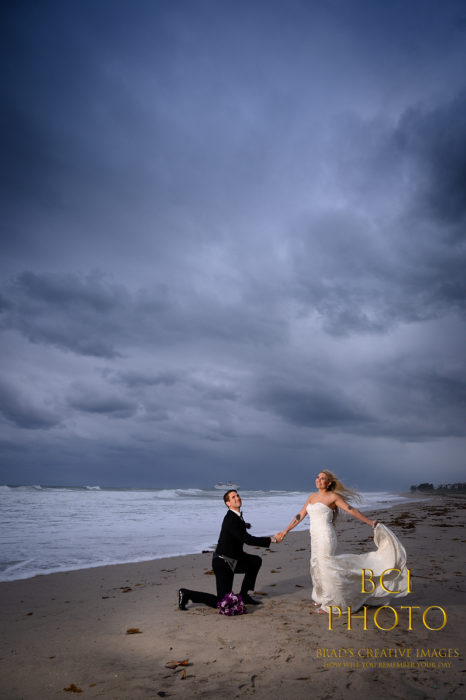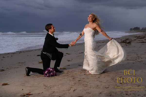 Seems like the theme of 2019 has been rain thus far and Saturday was no exception. Forcing our ceremony inside yet again, at least the Hilton Singer Island’s facility still is open air and much better than the usual blah banquet room for a ceremony. The rains did abate just long enough for some romantics out on the beach, and even the tide tried to get our couple! lol But everyone was a trooper and didn’t let the weather get them down and had a great time! The inclement weather actually made for some very cool beach portraits. The boys from Traxx Entertainment took the reigns after that and kept everyone dancing all night. Sarandipity really outdid themselves as the decision to have the ceremony on the beach vs inside changed about 20 time in the last hour but none the less the ceremony location looked fantastic as you can see. Check out some of our favorites below the video!!